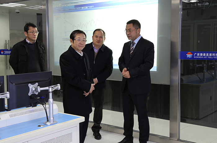 高雄深入了解了廣西ETC項目攻堅及實現(xiàn)全國聯(lián)網(wǎng)后運營情況,充分肯定了新發(fā)展集團在科技、人才領(lǐng)域的突出優(yōu)勢,特別是近期在參與智慧交通、智慧城市建設(shè)中所作出的努力和貢獻(xiàn)。高雄一行參觀了建設(shè)在捷通公司的全區(qū)ETC系統(tǒng)中心機房,認(rèn)真聽取了呂毅關(guān)于我區(qū)ETC系統(tǒng)運營狀況、八桂行卡發(fā)行量、機房設(shè)備及安裝運轉(zhuǎn)、車載OBU裝載使用等情況匯報。