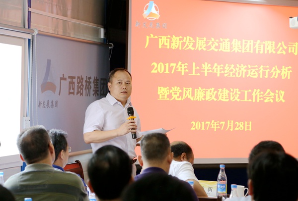 7月28日,集團公司在南寧市柳南高改快3標項目召開2017年上半年經濟運行分析暨黨風廉政建設工作會議。會議傳達了交通運輸部2017年上半年工作總結和下半年工作會議精神,全區(qū)縣域經濟發(fā)展大會暨年中工作會議精神以及自治區(qū)國資委2017年上半年經濟運行分析、安全生產暨“1+N監(jiān)督閉環(huán)”工作推進會議精神,對集團公司上半年經濟運行情況和黨風廉政建設工作情況進行了認真總結與分析,研究部署了下一階段工作任務。會議由集團公司黨委副書記、副董事長、總經理唐咸秋主持。