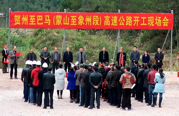 12月22日,集團公司賀州至巴馬高速公路(蒙山至象州段)(簡稱“蒙象高速”)在金秀縣召開開工現(xiàn)場會,標志著該項目正式開工建設。來賓市人民政府副市長韋平主持會議。