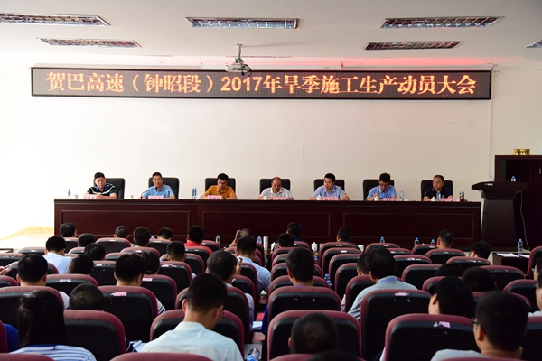 8月18日,賀州至巴馬高速公路(鐘山至昭平段)(以下簡稱鐘昭高速)2017年旱季施工生產(chǎn)動員大會在昭平召開。集團公司有關(guān)領(lǐng)導(dǎo),公司黨總支書記、董事長、總經(jīng)理賴水平,新恒通公司常務(wù)副總經(jīng)理蘇偉勝等領(lǐng)導(dǎo)出席會議,各參建單位共180人參加會議。