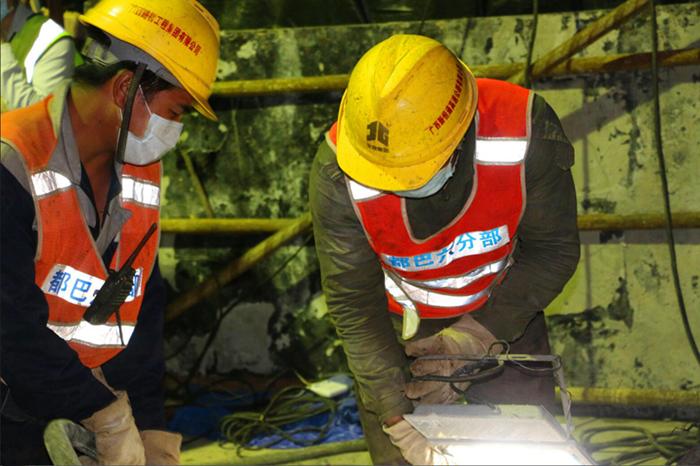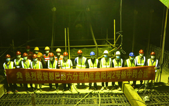 盤陽河2號橋中跨合龍結(jié)構(gòu)受力復雜,對施工工藝及質(zhì)量要求較高,且作業(yè)面積狹小,在夜間低溫條件下才能進行合龍澆筑,施工難度較大。都巴高速指揮部與項目管理人員精心策劃、嚴密組織施工,成立了工作領(lǐng)導小組和突擊隊,堅持一手抓疫情防控、一手抓復工復產(chǎn),安全、優(yōu)質(zhì)、高效完成建設(shè)任務。